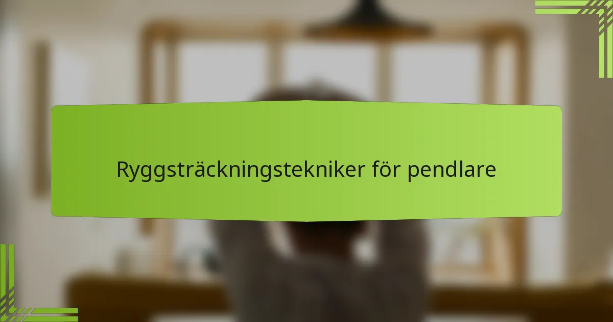 Effektiva stretchingtekniker för pendlare fokuserar på att lindra spänningar och förbättra flexibiliteten, särskilt för dem som spenderar långa timmar sittande eller stående. Att inkludera ryggstretching i din dagliga rutin kan hjälpa till att minska smärta och obehag, vilket gör din pendling mer uthärdlig.