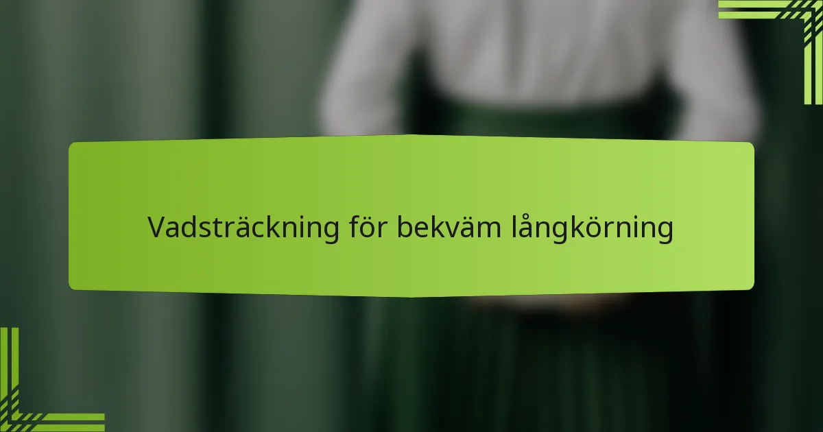 Effektiva vadmuskelsstretchningar kan avsevärt öka komforten under långa bilresor genom att förbättra flexibiliteten och minska spänningen i vadmusklerna. Att inkludera både statiska och dynamiska stretchningar i din rutin kan hjälpa till att förebygga obehag och främja bättre cirkulation under körning.