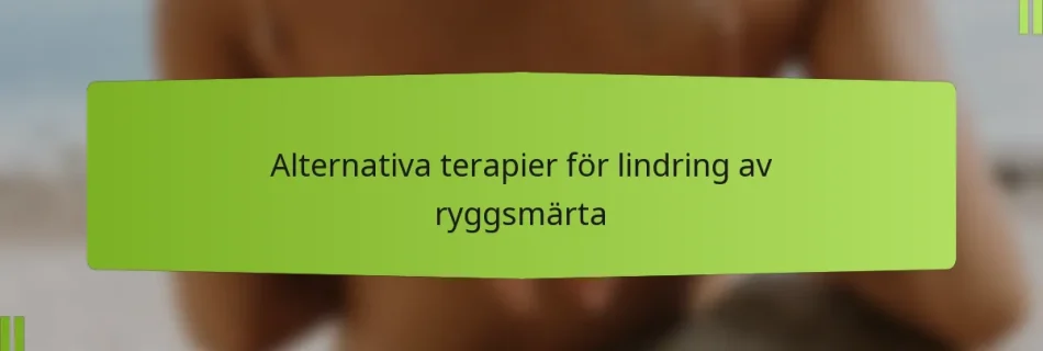 Alternativa terapier som akupunktur, kiropraktik och massagebehandling kan ge effektiv lindring för ryggsmärta. Dessa tillvägagångssätt fokuserar ofta på holistisk behandling och kan komplettera traditionella medicinska insatser.