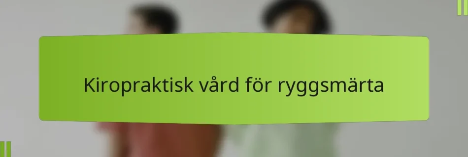Kiropraktik fokuserar på att diagnostisera och behandla muskel- och skelettstörningar, särskilt ryggradens felställningar. Kiropraktorer använder manuella justeringar för att förbättra ryggradens funktion, vilket kan lindra ryggsmärta och förbättra den övergripande rörligheten. Regelbundna besök kan leda till långsiktiga fördelar för personer med kronisk ryggsmärta.