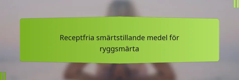 Receptfria (OTC) smärtlindringsalternativ för ryggsmärta inkluderar vanligtvis icke-steroida antiinflammatoriska läkemedel (NSAID) som ibuprofen och naproxen. Paracetamol är ett annat vanligt val som kan hjälpa till att minska smärta utan att påverka inflammationen. Dessa läkemedel är generellt effektiva för mild till måttlig obehag och finns allmänt tillgängliga utan recept.