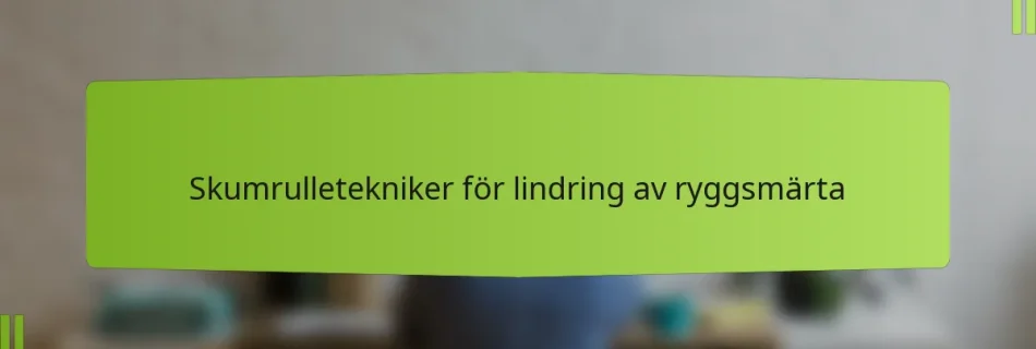 Foam rolling är en effektiv teknik för muskelavslappning och smärtlindring i ryggen. Fokusera på att rulla på den nedre och övre ryggen, samt på sätesmusklerna och höfterna. Tillbringa 1-2 minuter på varje område, och applicera ett milt tryck för att frigöra spänningar och förbättra blodflödet.