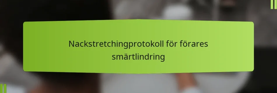 Nacksmärta är ett vanligt problem för förare, ofta orsakat av dålig hållning, långvarigt sittande och stress. Att implementera effektiva nackstretchingprotokoll kan hjälpa till att lindra obehag genom att öka flexibiliteten och minska muskelspänningar. Genom att inkludera dessa stretchövningar i din rutin kan du förbättra din körupplevelse och förebygga långsiktig skada. Key sections in the article: …