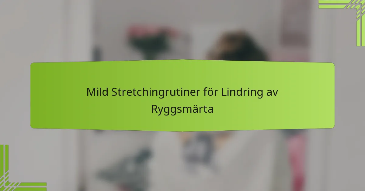 Mjuka stretchingrutiner för lindring av ryggsmärta är utformade för att öka flexibiliteten och lindra spänningar i ryggmusklerna. Genom att inkludera specifika rörelser kan dessa rutiner avsevärt minska obehag och förbättra den övergripande rörligheten, vilket gör dem till en viktig del av hanteringen av ryggsmärta.
