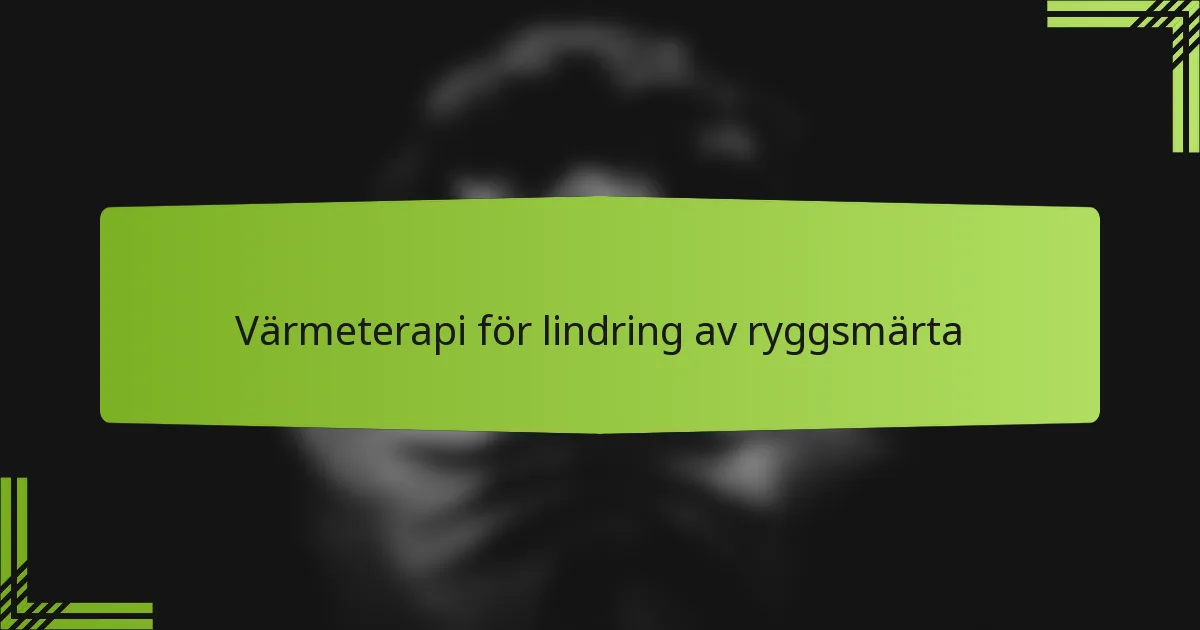 Hur ska värmeterapi tillämpas för lindring av ryggsmärta?