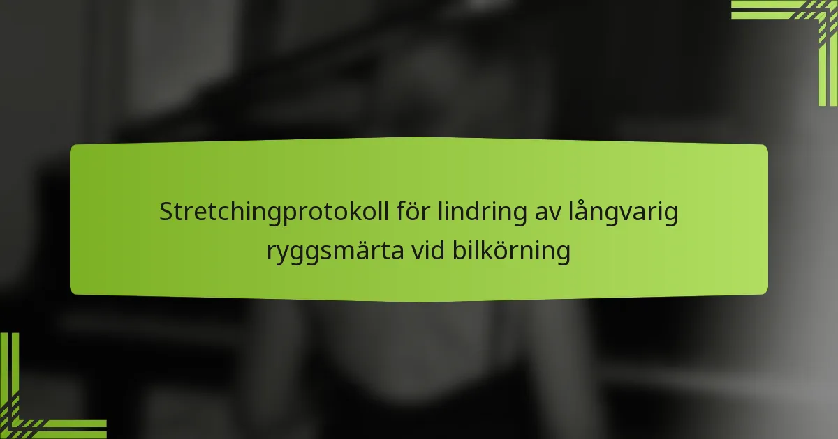 Det optimala stretchingprotokollet för långa bilresor involverar en kombination av stretchingtekniker före, under och efter körningen som är utformade för att lindra ryggsmärta och förbättra komforten. Att implementera dessa rutiner kan öka flexibiliteten, minska muskelspänningar och främja bättre cirkulation under längre perioder av sittande.